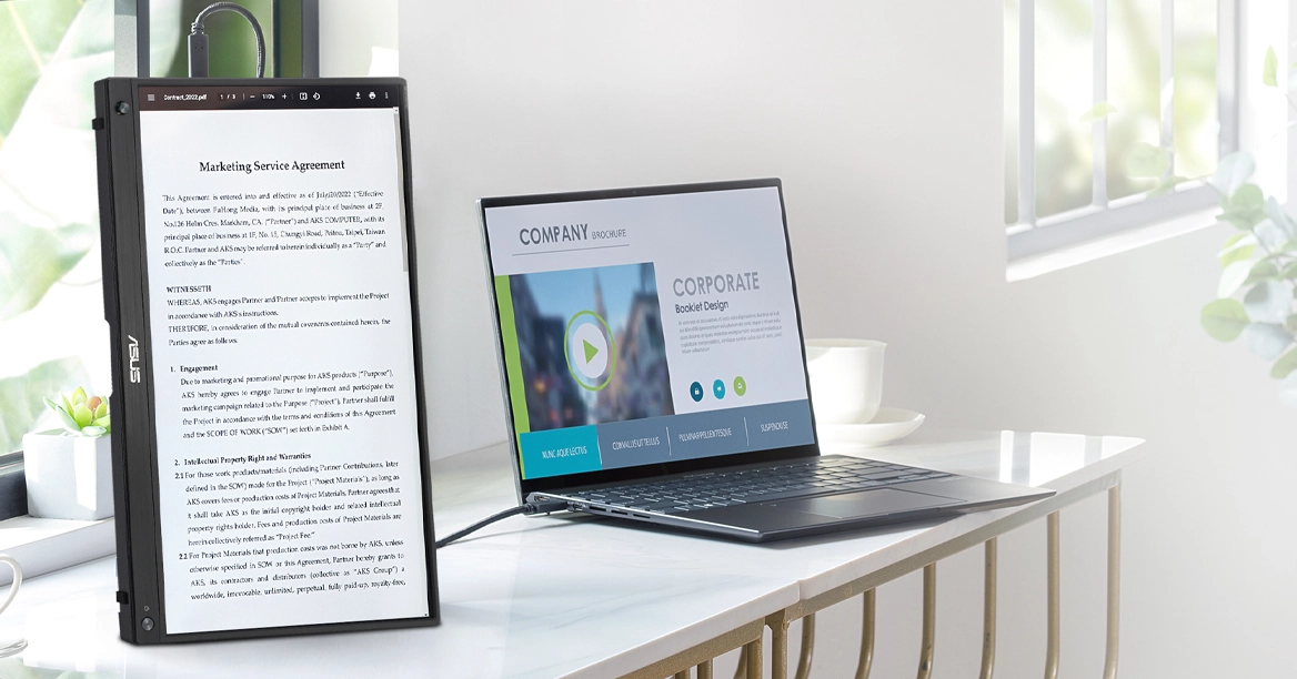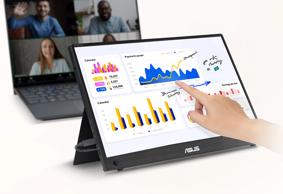 Работайте, общайтесь и учитесь одновременно. ZenScreen Touch MB16AHT расширяет рабочее пространство, позволяя проводить видеозвонки на основном экране ноутбука, а документы или презентации просматривать на дополнительном.