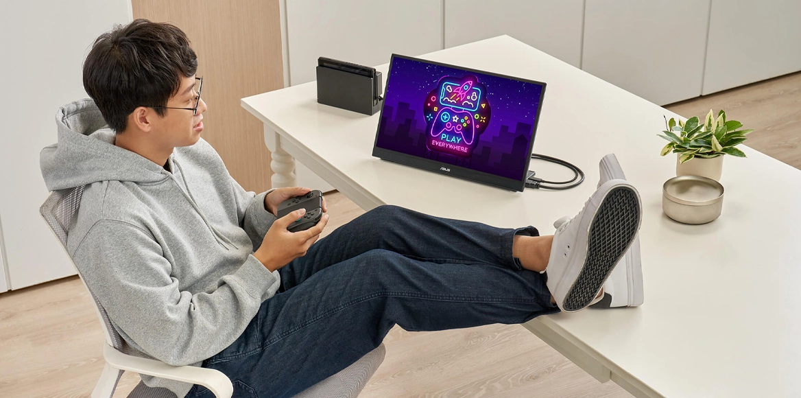 ZenScreen MB16QHG можно использовать в любом положении — горизонтальном, вертикальном или лежа. Эргономичная подставка позволяет установить экран под удобным углом для комфортной работы или просмотра.