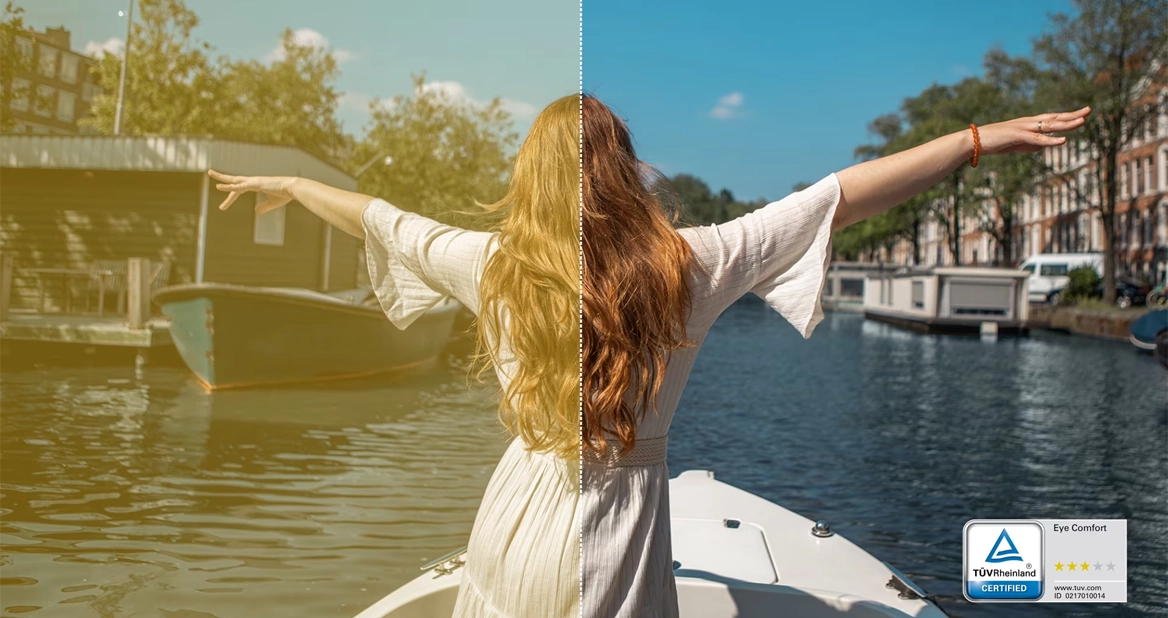 Минимизируйте вредное воздействие синего света без ущерба для точности цветопередачи с помощью постоянно включенной встроенной технологии Dell ComfortView Plus. Почувствуйте разницу: ComfortView Plus помогает уменьшить желтые оттенки, обеспечивая лучшую точность цветопередачи по сравнению с результатами программных технологий снижения уровня синего света.