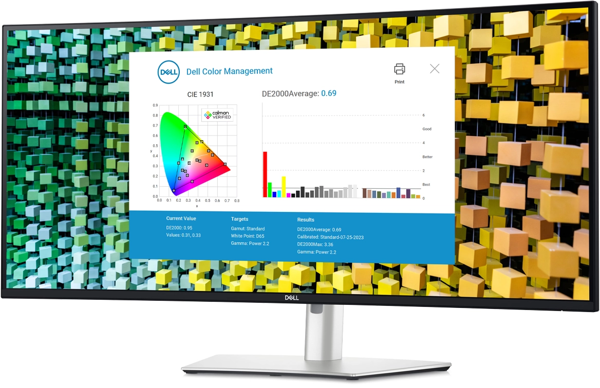 Легко калибруйте цвета монитора в новом программном обеспечении Dell Colour Management с сертификацией Calman Verified.