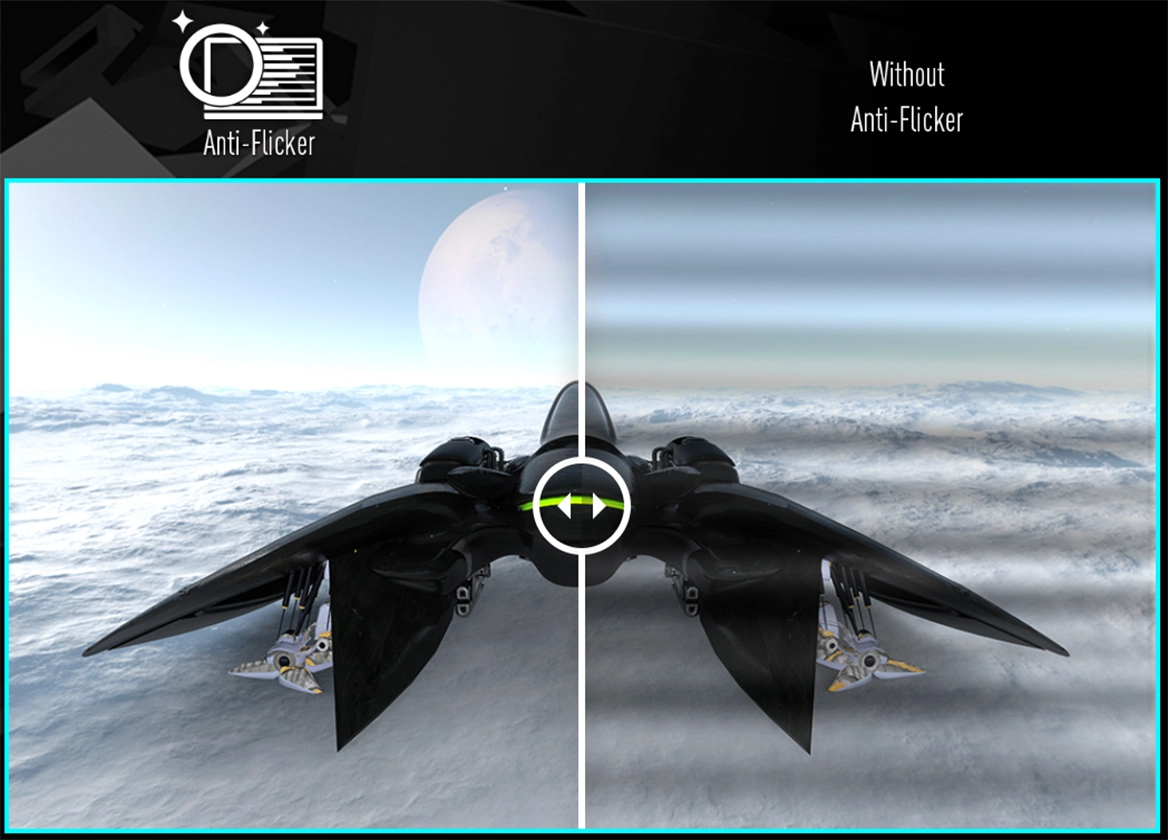 Стандартные экраны мерцают с высокой частотой, что со временем вызывает усталость глаз. Технология MSI Anti-Flicker, сертифицированная TUV Rheinland, снижает интенсивность мерцания, обеспечивая комфорт даже во время длительных игровых марафонов.