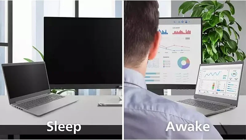 Функция PowerSensor 2 этого монитора снижает потребление энергии, определяя, когда пользователи приближаются и удаляются от экрана. После переключения параметров экранного меню на User (Пользователь) необходимо настроить параметры Windows 11, чтобы эта функция работала должным образом. После выполнения настроек монитор и подключенный ПК/ноутбук будут выходить из состояния ожидания, когда кто-то приближается к ним, и переходить в состояние ожидания, когда человек удаляется; эффективно сокращает время пробуждения. Расстояние обнаружения может быть изменено от 50, 75 до 120 см от ноутбука пользователя. Обратите внимание, что должна быть установлена Windows 11.