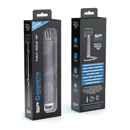 С новым телескопическим Моноподом - штативом SP POV POLE 19", идеально совместимым с камерами GoPro, самые невероятные снимки в стиле экшн станут реальностью. Удивительно легкий и прочный, что облегчает его использование и транспортировку. Длина монопода регулируется от 175 мм до 480 мм, это дает возможность поймать в кадр максимальное количество объектов. Удобная ручка из нескользящего материала, а также регулируемый ремешок, надежно фиксируют монопод в руке, предотвращая его падение и потерю. Камера крепится непосредственно на монопод, без переходника.