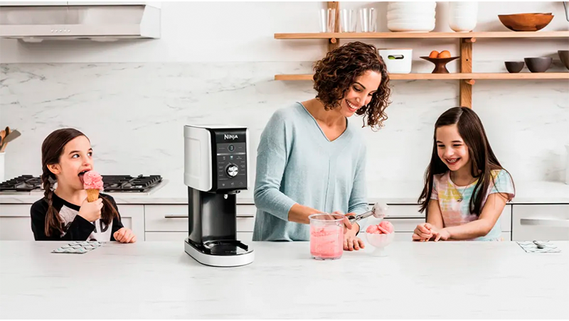 Мощные лезвия из нержавеющей стали мгновенно измельчают частицы льда и смешивают ингредиенты, чтобы создать самое вкусное и освежающее замороженное лакомство в считанные минуты. Три контейнера CREAMi Deluxe объемом 709 мл с крышкой для хранения помогут приготовить десерты для всей семьи. Детали мороженицы совместимы с посудомойкой и легко промываются проточной водой. Не забудьте исследовать руководство по рецептам, чтобы порадовать себя интересными вкусовыми комбинациями.