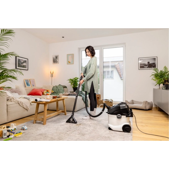 - Универсальные возможности благодаря широкому набору принадлежностей для влажной и сухой уборки, включающему переключаемую насадку для сухой уборки пола. Совместимость с многочисленными принадлежностями для хозяйственных пылесосов.