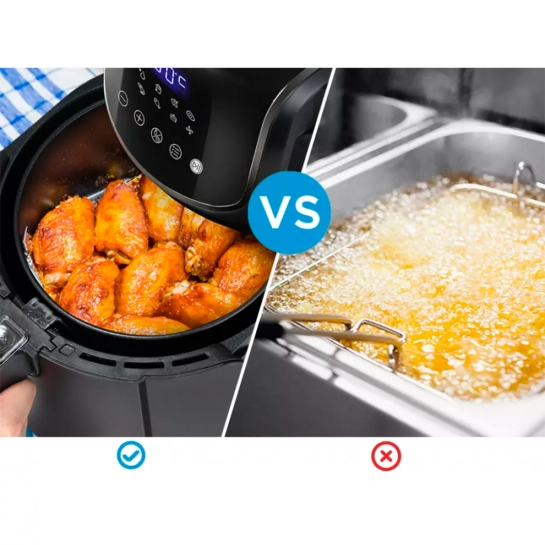 - 8 программ приготовления: разморозка, картофель фри, куриные крылышки, стейк, креветки, рыба, кекс, дегидратация
