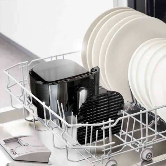 Безопасная жарка с хрустящими, золотистыми результатами — с минимальным содержанием масла или совсем без него. До 99% меньше добавленного жира (700 г свежего картофеля фри с 8 мл масла против 2 л в традиционной фритюрнице).