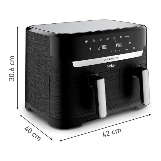 Характеристики для Мультипечь-аэрогриль с двумя отсеками Tefal Dual Easy Fry (EY9018) (Global)