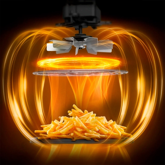 10 автоматических программ приготовления: картофель фри, курица, стейк, рыба, десерт, пицца, наггетсы, овощи, креветки и бекон.