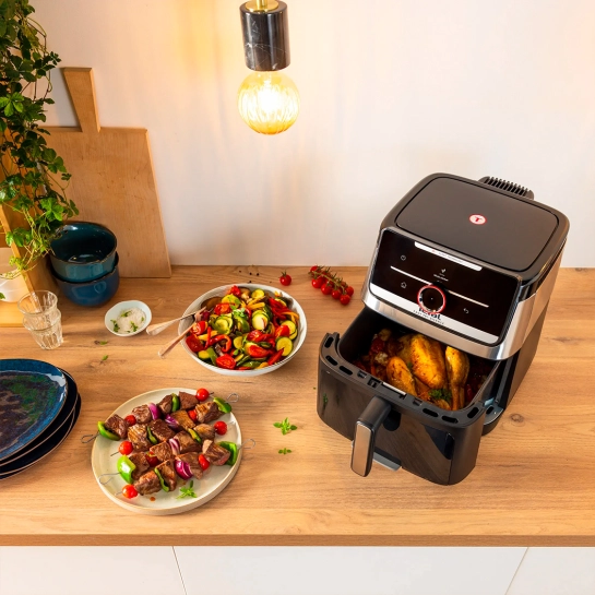 Мультипечь Tefal Easy Fry Smart&Silence XXL EY876DE1 обеспечивает непревзойденную хрусткость блюд в ультратихом режиме благодаря нашей эксклюзивной Silent Technology. Система Smart Assist с более чем 55 предварительными настройками помогает подобрать идеальные параметры, а широкий набор функций делает приготовление более простым: легкая в очистке конструкция с крышкой для хранения, обзорное окно для контроля блюда и регулировка температуры.