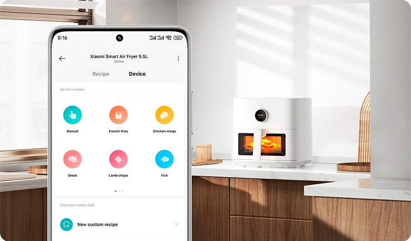Интерактивный дисплей под управлением ИИ-алгоритмов позволяет в одно касание регулировать режим готовки и температуру внутри чаши, а также устанавливать таймер на удобное время. 12 различных рецептов вкусных и простых блюд обеспечивают быстрое смарт-приготовление в одно касание. Откройте доступ к дополнительным 100+ эксклюзивным рецептам, просто подключившись к приложению Mi Home/Xiaomi Home. На вашем смартфоне можно отслеживать ход приготовления.