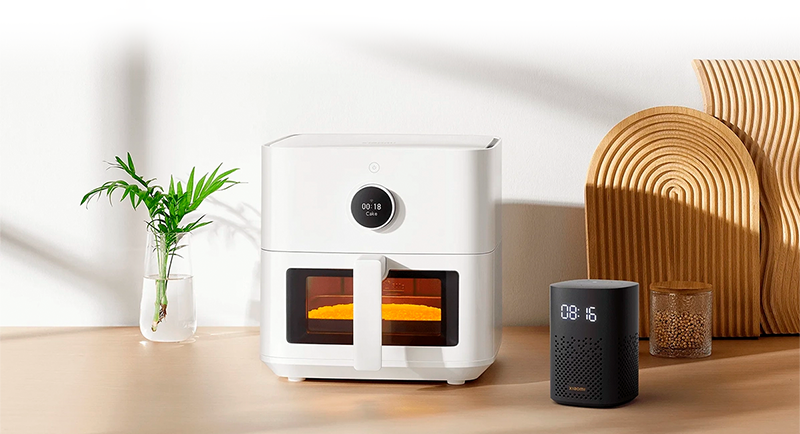 Можно воспользоваться механическим регулятором для выбора параметров приготовления. Голосовое управление работает в тандеме с Google Assistant: вы просто задаете нужную команду, а мультипечь Xiaomi Smart Air Fryer оперативно ее выполняет.