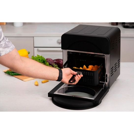 Инновационные функции, такие как вращение вертела, отложенный старт, размораживание и поддержание температуры, а также наличие LED-дисплея, внутреннего освещения и сенсорное управление, делают приготовление невероятно легким. Тогда как индикация окончания процессов, предохранительный выключатель и защита от перегрева обуславливают безопасность пользования.