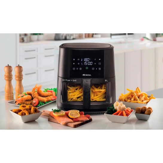 ARIETE 4630 подходит для разных видов пищи: картофеля фри, крокетов, рыбы, мяса и других панированных продуктов. Устройство оснащено 8 предварительно установленными программами, упрощающими процесс приготовления как замороженных, так и свежих блюд. Благодаря большой вместимости, удобному управлению и современному дизайну, эта мультипечь станет незаменимым помощником на вашей кухне, позволяя быстро и легко готовить любимые блюда.