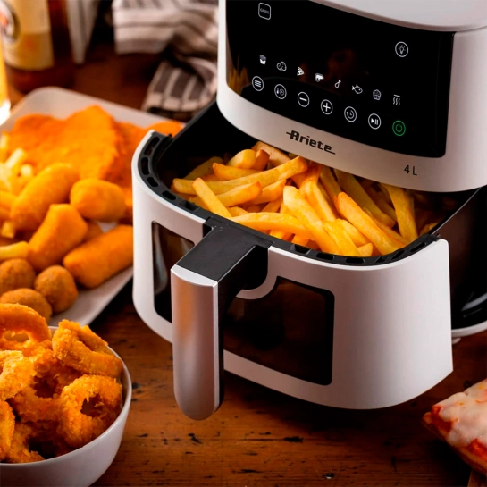 ARIETE 4633 BL подходит не только для картофеля фри, но и для приготовления крокетов, рыбы, мяса и разнообразных блюд. Благодаря 9 предварительно установленным программам можно быстро и удобно готовить как замороженные продукты, так и свежие ингредиенты. Инновационная технология воздушной жарки обеспечивает равномерное приготовление без необходимости большого количества масла, что делает блюда более полезными и легкими для пищеварения.