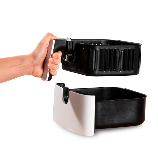 Дополнительная антипригарная корзина легко извлекается из чаши одним нажатием кнопки. Таким образом, вы можете равномерно распределить ингредиенты для более равномерного приготовления. Внешняя удобная ручка предотвращает случайные ожоги и позволяет удобно держать емкость. А после еды можно просто вымыть её в посудомоечной машине.