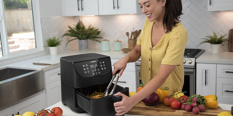 Мультипечь Cosori – это не просто устройство для жарки картофеля фри. Оно предлагает множество режимов для приготовления десертов, корнеплодов, хлеба, овощей, морепродуктов, бекона, стейков и многого другого. Кроме того, Cosori быстро обрабатывает пищу с меньшим количеством масла, что делает ее гораздо более полезной. Вы получите такую же хрустящую корочку, что и при традиционной жарке, но при этом будете пользоваться более эффективным методом. Мультипечь также идеально подходит для замороженных ингредиентов.