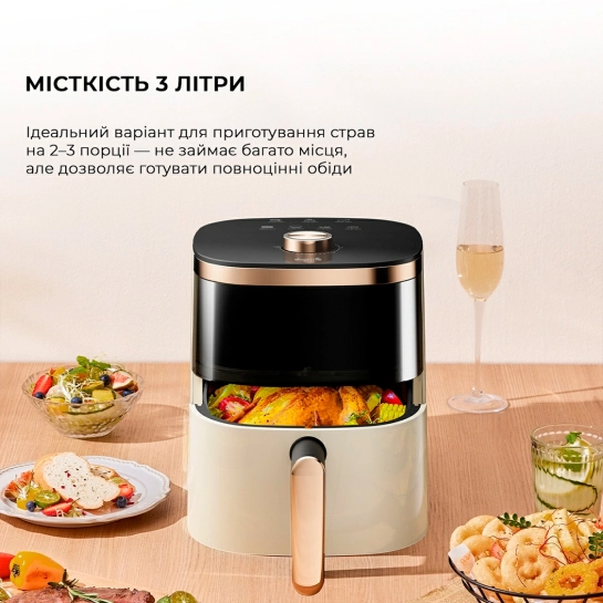 Deerma KZ30 создана для тех, кто ценит пространство и функциональность. С объёмом корзины 3 литра она идеально подходит для порций на 2–3 человека, будь то семейный ужин или перекус с друзьями. Компактные размеры 235 x 225 x 275 мм и лёгкий вес 2,7 кг позволяют легко найти для неё место на кухне. Ёмкость для готовки выполнена из безопасных для пищи материалов, а её съёмная конструкция делает очистку настолько простой, что вы будете наслаждаться не только готовкой, но и лёгкостью ухода за устройством.