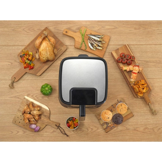 Благодаря прозрачному окошку вы можете отслеживать, не перепекается ли ваша еда. Вам даже не нужно открывать фритюрницу, чтобы контролировать процесс, что означает отсутствие потерь горячего воздуха и отсутствие нарушения цикла приготовления.