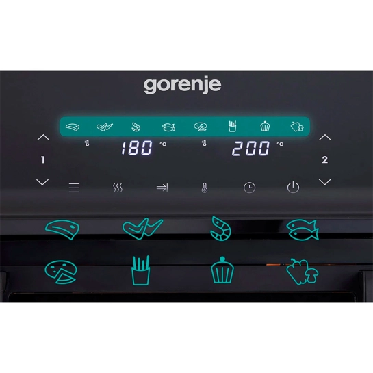 Gorenje AF2700BP поддерживает функции: ручной режим, выпечка, запекание рыбы, приготовление овощей и мяса, жарка картофеля фри. Среди полезных особенностей – возможность приготовления без масла, приготовление двух блюд одновременно, антипригарное покрытие для легкого ухода. Имеется индикатор режимов работы, позволяющий контролировать процесс.