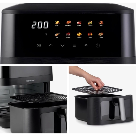 Созданная с учетом активного стиля жизни и заботы об окружающей среде, аэрофритюрница Hisense нагревается в считанные секунды благодаря сверхбыстрой системе предварительного разогрева. В сочетании с закрытой камерой приготовления и эффективной циркуляцией тепла это предотвращает лишние теплопотери, что обеспечивает быстрое, здоровое и энергоэффективное приготовление.