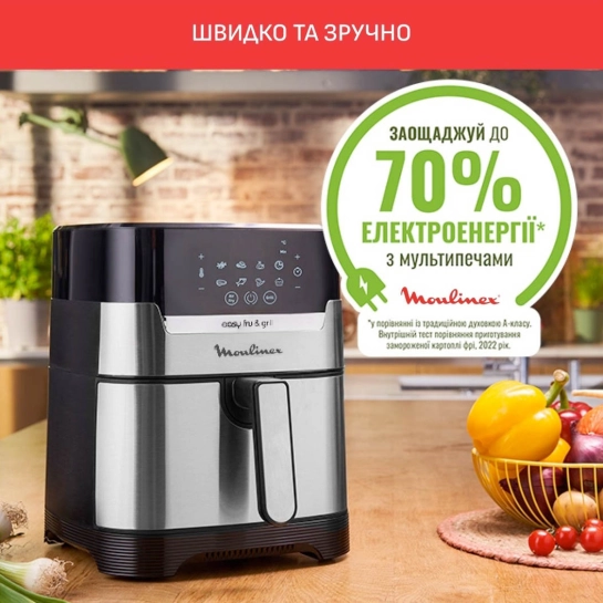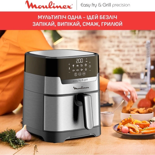 С помощью Moulinex Easy Fry & Grill вы сможете жарить, запекать, подрумянивать и готовить на гриле самые разные блюда — от хрустящих нагетсов до сочных стейков и овощей. Это универсальный прибор, который заменит духовку и сковороду, экономя место и время.