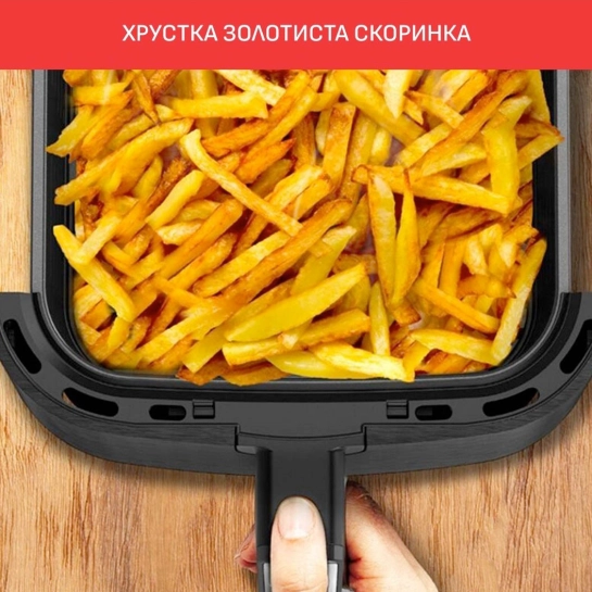 Инновационная технология Extra Crisp обеспечивает оптимальную циркуляцию горячего воздуха, создавая золотистую, аппетитную корочку снаружи и мягкость внутри. Благодаря этому вы получаете тот же результат, что и при жарке в масле, но с на 99% меньшим его количеством — идеально для здорового образа жизни.