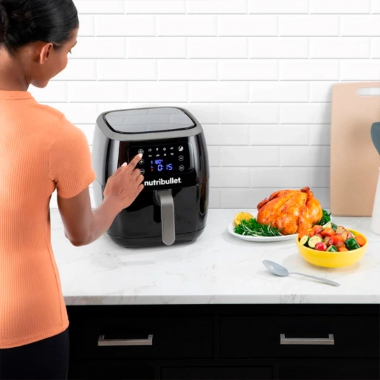 Благодаря 8 автоматическим программам приготовления и 7-литровой чаше цифровая воздушная фритюрница Nutribullet XXL позволяет легко готовить все, что угодно. Она запекает, жарит и даже позволяет сушить (ягоды, фрукты и т.д.), чтобы приготовить хрустящие порции ваших любимых блюд для всей семьи. Мультипечь Nutribullet XXL NBA071B достаточно вместительна, чтобы запечь целую курицу, но идеально подходит для приготовления небольших порций закусок. Конвекция на 360° обеспечивает эффективную работу и постоянную температуру внутри чаши для получения идеальной консистенции блюд и сокращения времени их приготовления с минимальным количеством масла. Идеальный хруст в здоровой версии!
