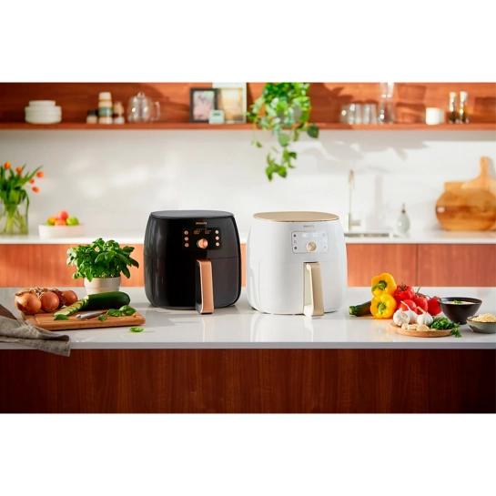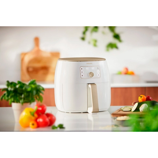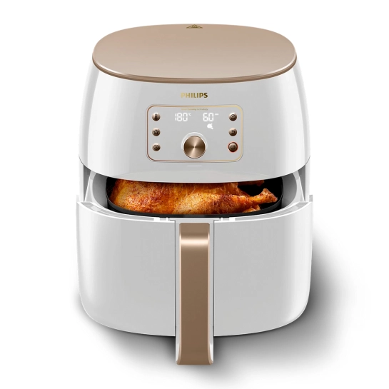 Наслаждайтесь полезными жареными блюдами, хрустящими снаружи и нежными внутри, с технологией, устраняющей 90 % жира. Philips XXL использует для жарки горячий воздух и не требует использования масла. Технология Philips Rapid Air создает в 7 раз более быстрый воздухопоток, чтобы вы могли наслаждаться превосходным вкусом и текстурой блюд.