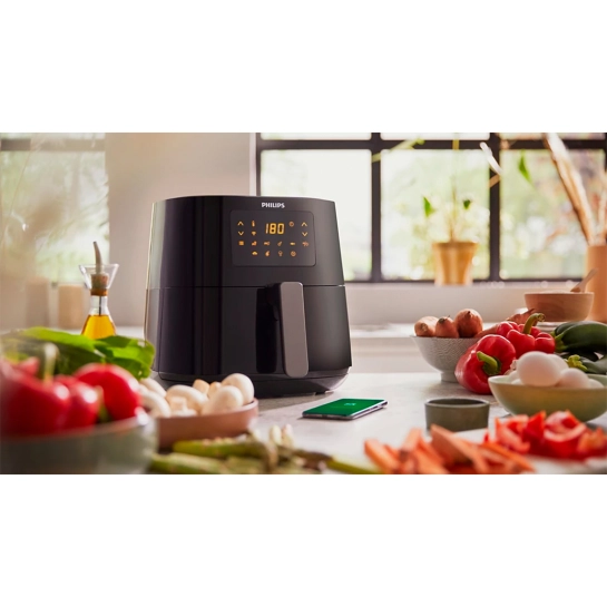Аэрогриль Philips использует горячий воздух для приготовления ваших любимых блюд с хрустящей корочкой, обеспечивая на 90 % меньше жира.