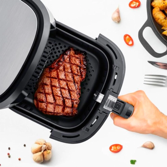 3D-нагрев сверху и снизу работает через технологию Fry Force 360° - позволяет готовить минимум с маслом, обеспечивая хрустящую корочку и сочное сердце блюда.