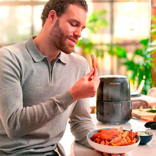 В мультипечи Russell Hobbs SatisFry 26500-56 есть все необходимое для приготовления вкусных обедов без особого труда. SatisFry компактна (объем 1,8 литра), позволит вам приготовить к 700 г картофеля фри, что на 78% быстрее, чем у обычной духовки. Используя его, вы можете полностью отказаться от масла или значительно уменьшить его количество, делая еду максимально здоровой и полезной для вас и вашей семьи. Мясо и рыба, обжаренные горячим воздухом, также сохраняют свою природную сочность и отличный вкус. Блюда готовятся быстро и легко, без суеты и беспорядков на кухне.