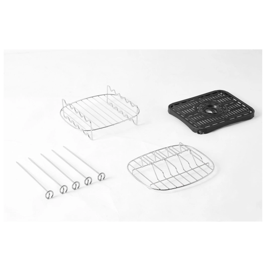 Решетка для шампуров и решетка для выпечки придают еще больше возможностей для вашего рациона. Создавайте здоровые альтернативы любимым перекусам, например, домашний шашлык, сырные палочки и стрипсы с функцией аэрогриля без лишнего жира.