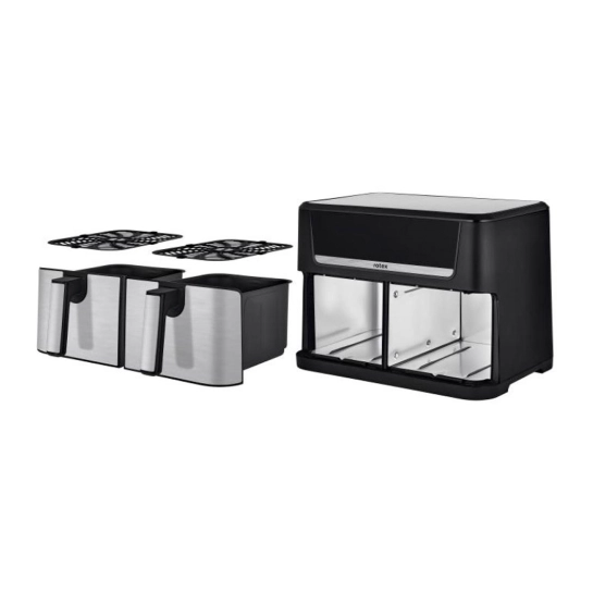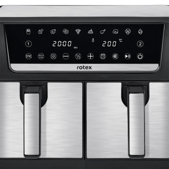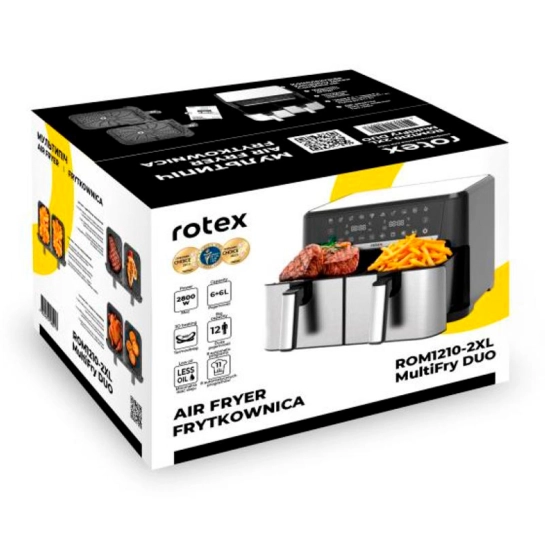 Rotex ROM1210-2XL MultiFry DUO – это настоящая мультифункциональная печь, сочетающая функции духовки, фритюрницы и гриля. Она позволяет готовить с минимальным количеством масла, сохраняя естественный вкус продуктов и делая блюда более полезными. Это отличный выбор для тех, кто ценит удобство, скорость и здоровое питание.