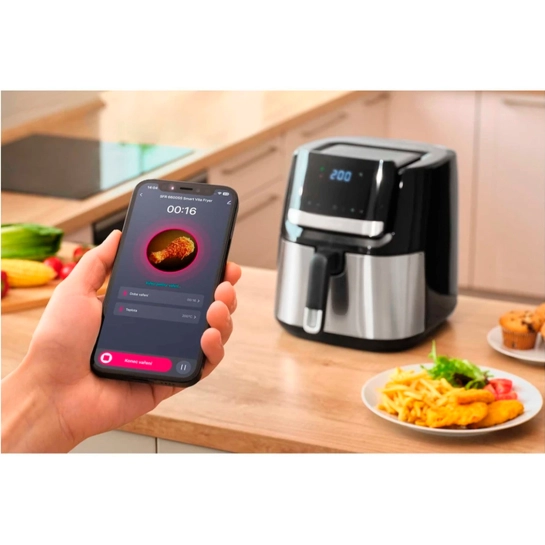 SENCOR Vita Fryer SFR6600SS – это мощная мультипечь-фритюрница нового поколения с технологией безмасляной жарки, которая позволяет готовить хрустящие блюда с минимальным содержанием жира. Благодаря объему 6,5 литра и мощности 1600 Вт, устройство обеспечивает быстрое приготовление пищи для всей семьи – от хрустящей картошки до мяса или овощей.