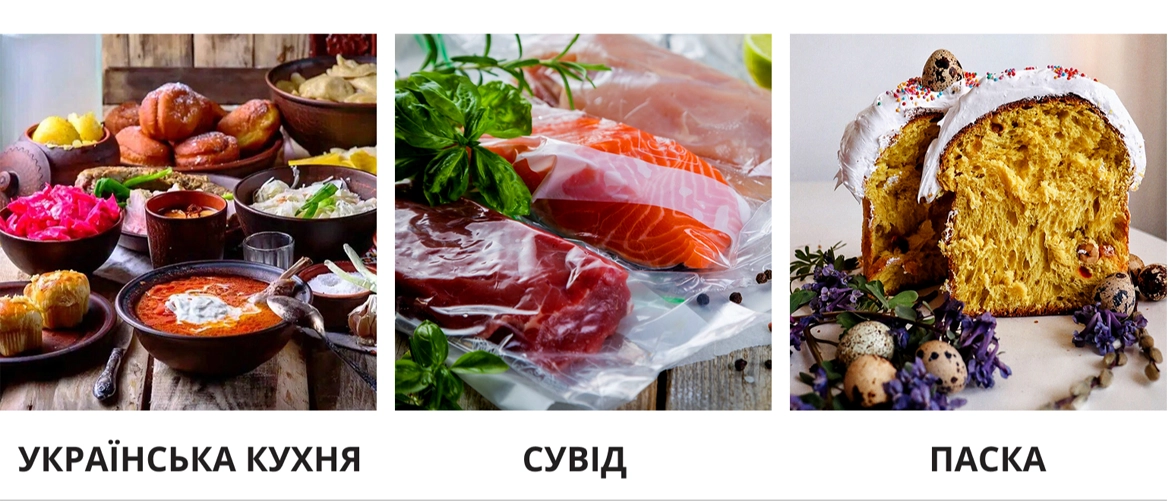 - Десерты: варенье, пирог, выпечка, кулич, йогурт.