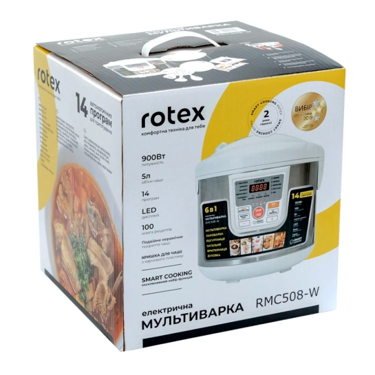 Мультиварка ROTEX RMC508-W это популярная модель, укомплектованная чашей с двойным керамическим покрытием. Мультиварка имеет весь необходимый функционал: регулировка времени и температуры, отложенный старт, таймер на 24 часа и 14 автоматических программ, в том числе, программа ШЕФ-повар, Томление, ПИВО. Чаша с двойным покрытием: керамическое внутри и антипригарное снаружи, имеет объем 5 литров. Доступная и надежная помощница на вашей кухне!