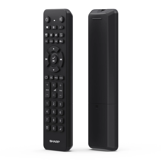 Управляйте своим аудиоустройством Sharp, не вставая с дивана, с помощью пульта дистанционного управления — регулируйте громкость, переключайте треки или изменяйте настройки.