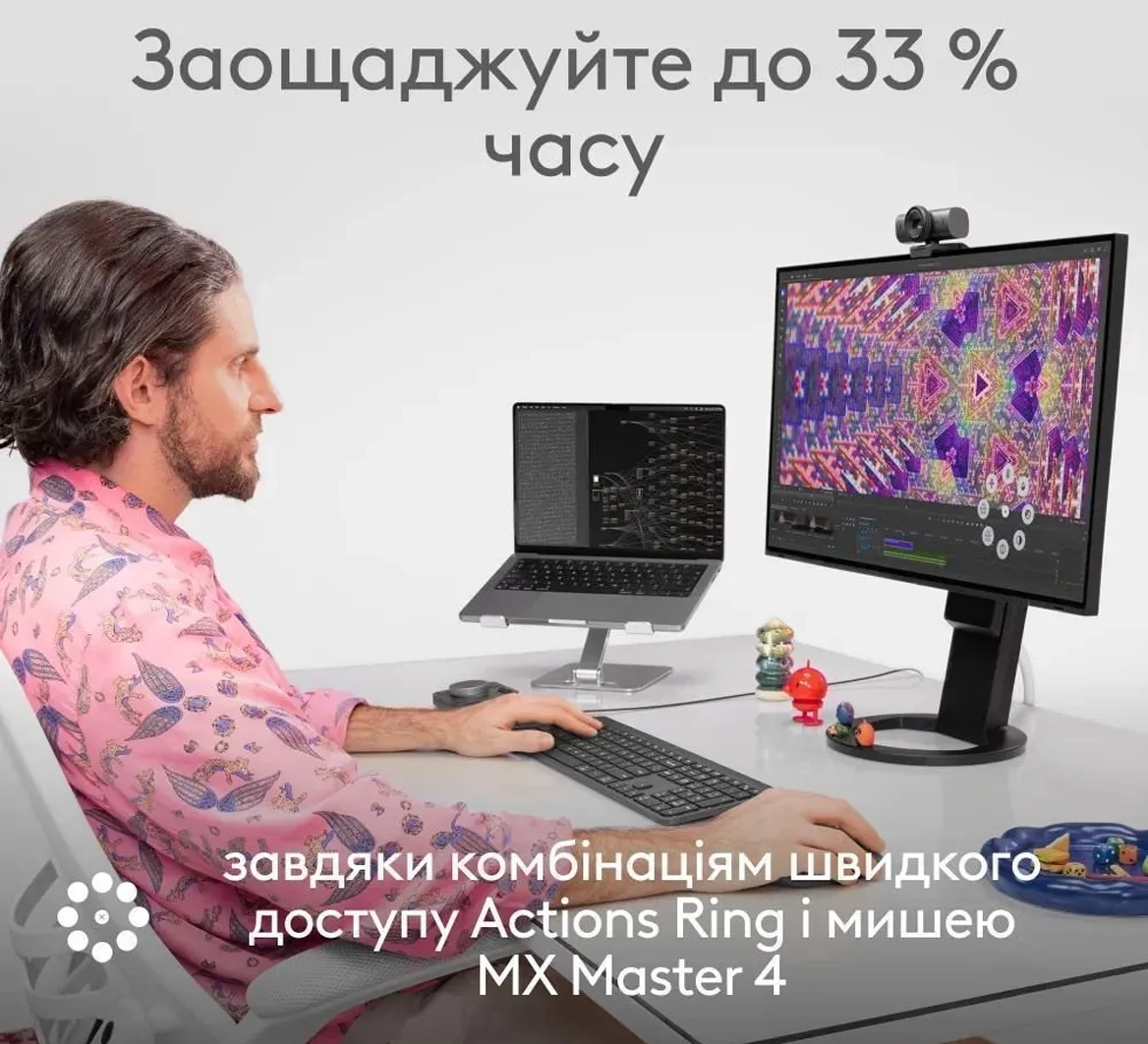 Ваши любимые инструменты, комбинации быстрого доступа и действия всегда под рукой благодаря динамическому наложению Actions Ring, которое автоматически адаптируется к программам, в которых вы работаете. Не нужно тратить время на поиск нужных функций — все настроено именно под ваш стиль работы, чтобы вы могли сосредоточиться на главном.