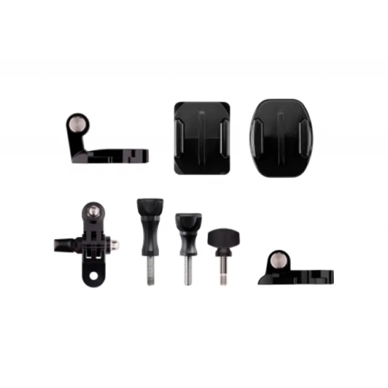 Прямое и изогнутое клейкое крепление подойдет для надежной фиксации камеры для плоских и объемных поверхностей, например, автомобилей, шлемов и мотоциклов. Г-образное крепление предполагает установку на вертикальную плоскость, например, бампер или стекло, а другое в комплекте – на горизонтальную. Шарнир поможет отрегулировать позицию камеры для идеального ракурса съемки, а крюк-фиксатор понадобится для избежание вибрации во время активностей.