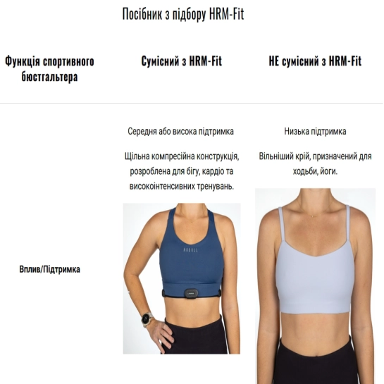 Застежка в форме клипсы легко и удобно крепится к спортивным бюстгальтерам со средней и высокой поддержкой, позволяя вам свободно двигаться и выкладываться на полную. HRM-Fit - ваш надежный помощник на тренировках.