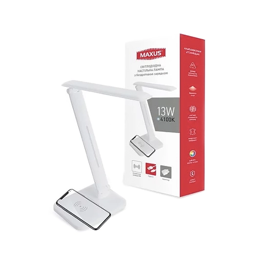 Настольная лампа Maxus DL 13W 4100K with Wireless charger в классическом белом корпусе – это "умный" светильник, отвечающий современным требованиям эргономики и функциональности.