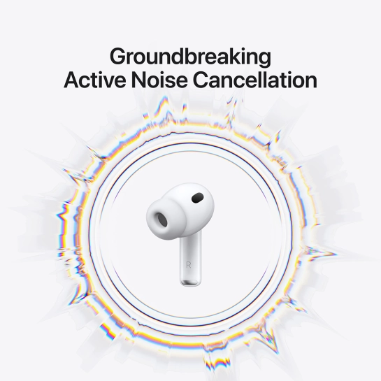 Представляем лучшее в мире внутриканальное активное шумоподавление для самого захватывающего прослушивания. Созданные с улучшенным акустическим уплотнением, AirPods Pro 3 автоматически адаптируются к вашей среде и предпочтениям. А новые сверхмалошумные микрофоны удаляют ещё больше нежелательных звуков. Так что вы слышите только то, что хотите — в небывалом аудиоопыте.