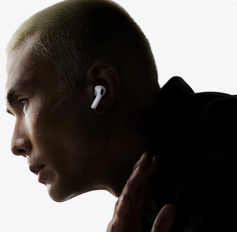 Адаптивный эквалайзер (Adaptive EQ) настраивает музыку под ваши уши в режиме реального времени в зависимости от посадки AirPods. Микрофоны, направленные внутрь, измеряют то, что вы слышите, а затем корректируют низкие и высокие частоты трека — так что вы получаете стабильно детализированное воспроизведение каждый раз.