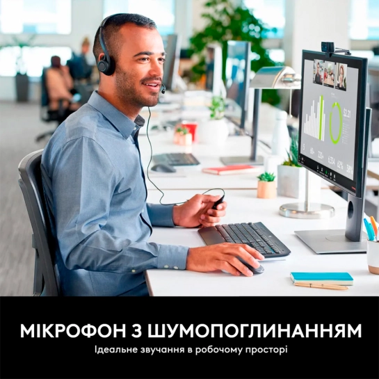 Эта гарнитура готова к работе с самого начала. Просто подключите ее к компьютеру через порт USB-A и начинайте общение. Удобный пульт управления, расположенный на проводе, позволяет увеличить или уменьшить громкость либо выключить звук, не отвлекаясь от разговора или другого важного дела.