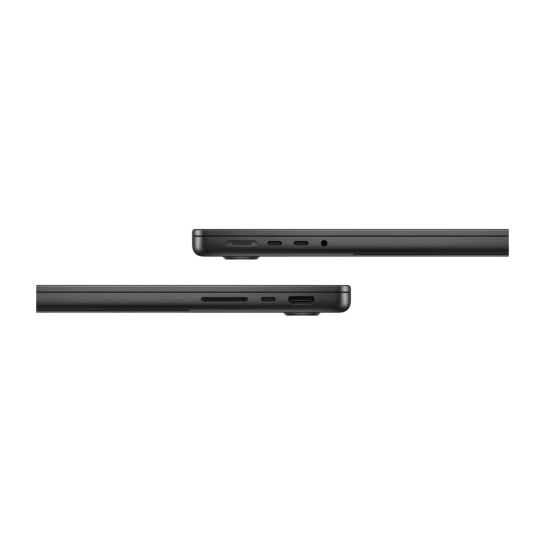 - Подключение — каждый MacBook Pro оснащен тремя портами Thunderbolt 4 или 5, портом HDMI, портом MagSafe 3, слотом для карт SDXC и разъемом для наушников. Подключайте высокоскоростные периферийные устройства и несколько внешних дисплеев.
