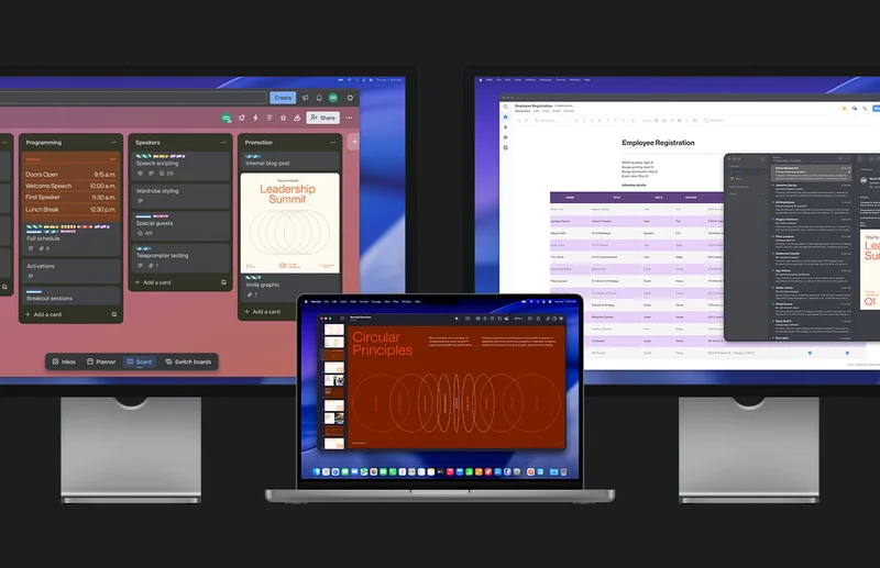 Если для проекта требуются более крупные полотна, вы можете подключить до двух дисплеев с помощью M5 и M4 Pro или до четырех дисплеев с помощью M4 Max. Великолепный Studio Display идеально сочетается с MacBook Pro, а его 27-дюймовый дисплей 5K делает всю вашу работу впечатляющей.