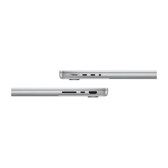 - Подключение — каждый MacBook Pro оснащен тремя портами Thunderbolt 4 или 5, портом HDMI, портом MagSafe 3, слотом для карт SDXC и разъемом для наушников. Подключайте высокоскоростные периферийные устройства и несколько внешних дисплеев.