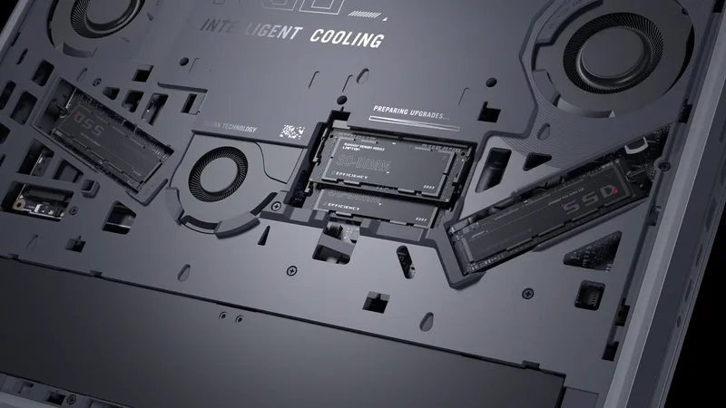 Для того, чтобы сделать апгрейд нового ROG Strix G18 проще, чем когда-либо, его дизайн был полностью переработан. Новая конструкция корпуса не требует инструментов для доступа к оперативной памяти, твердотельным накопителям и вентиляторам, а для слотов SSD используется новейшая система фиксации Q-Latch. Подобно механику опытной бригады, работающей на пит-лейн, ты можешь за считанные секунды изъять и заменить SSD и модули оперативной памяти, и машина снова заработает, не пропустив ни одного круга. Специальная рамка закрывает остальную часть материнской платы для защиты других компонентов, но ее можно легко снять удалив несколько винтов, если нужно выполнить дальнейшие работы.