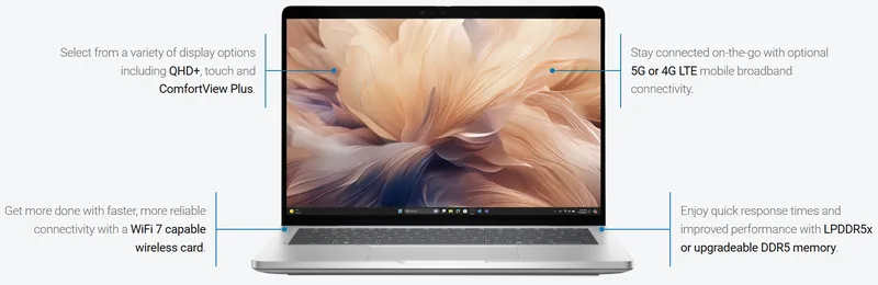- Выбирайте один из различных вариантов конфигурации дисплеев, включая QHD+, сенсорный и ComfortView Plus.
